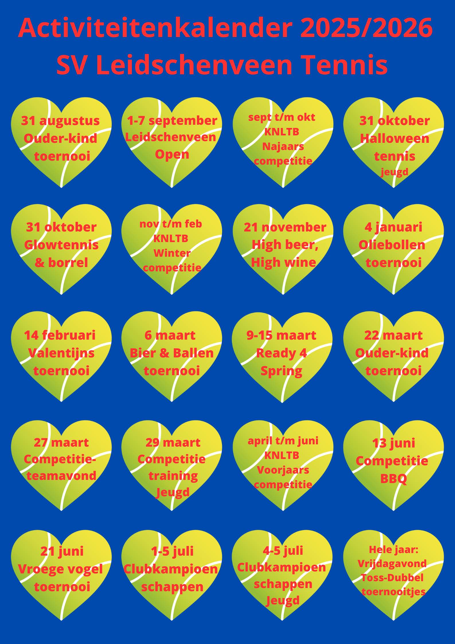 Check de clubagenda via de KNLTB ClubApp wanneer een en ander staat gepland en geef je op tijd op!